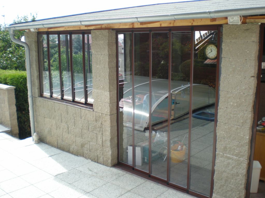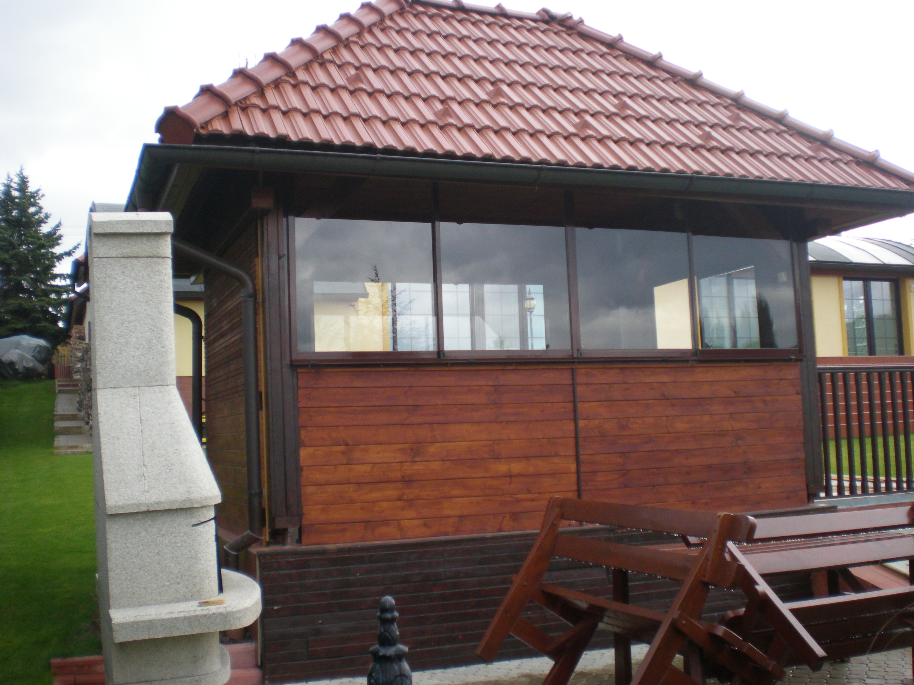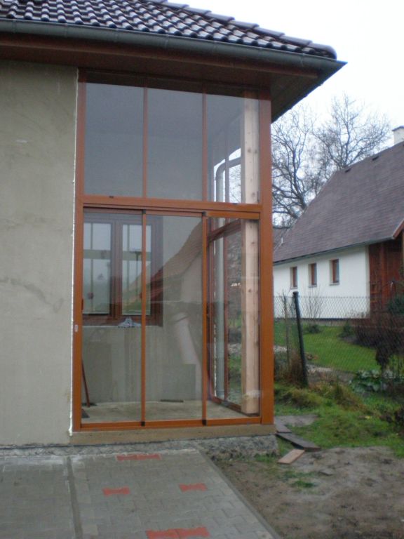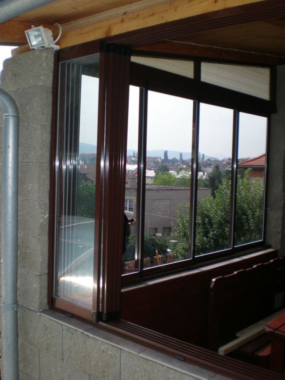 Rámový posuvný zasklívací systém z čirého skla tl. 4–6 mm nebo izolačního dvojskla 16 mm a hliníkových profilů pro zasklení lodžií, balkónů a výklenků domů, pro dělicí příčky interiérů a pro výrobu zahradních altánů.